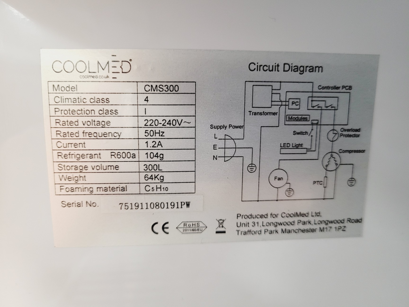 Coolmed CMS300 Medical Refrigerator Lab