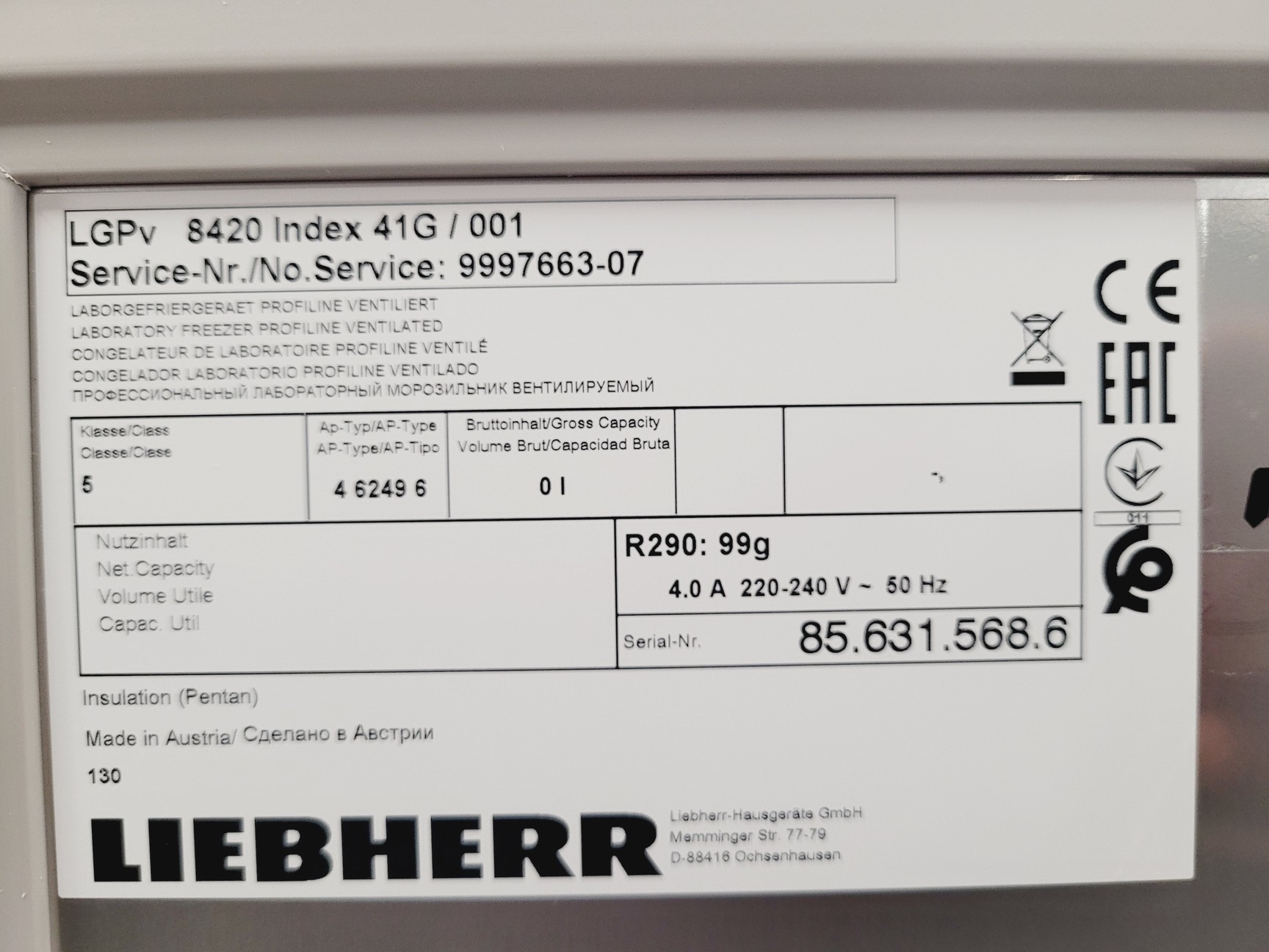 Leibherr Mediline -35ºc LGPV 8420 Medical Ultra Low Freezer Lab