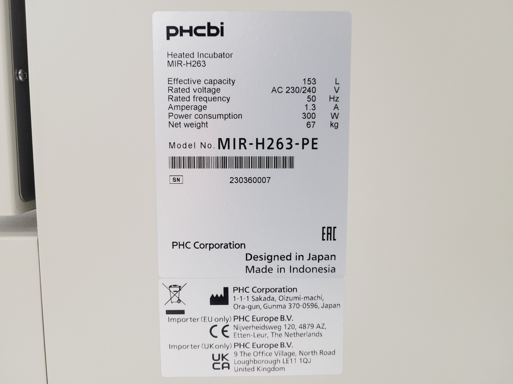 PHCBI MIR-H263-PE Incubator Lab