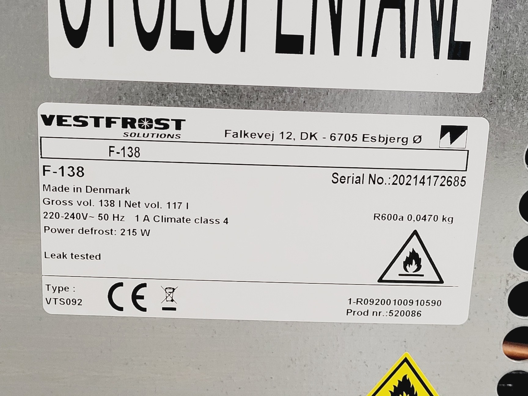 Vestfrost F-138 Laboratory Freezer -20ºC
